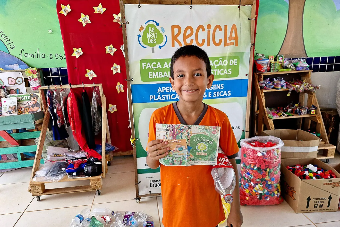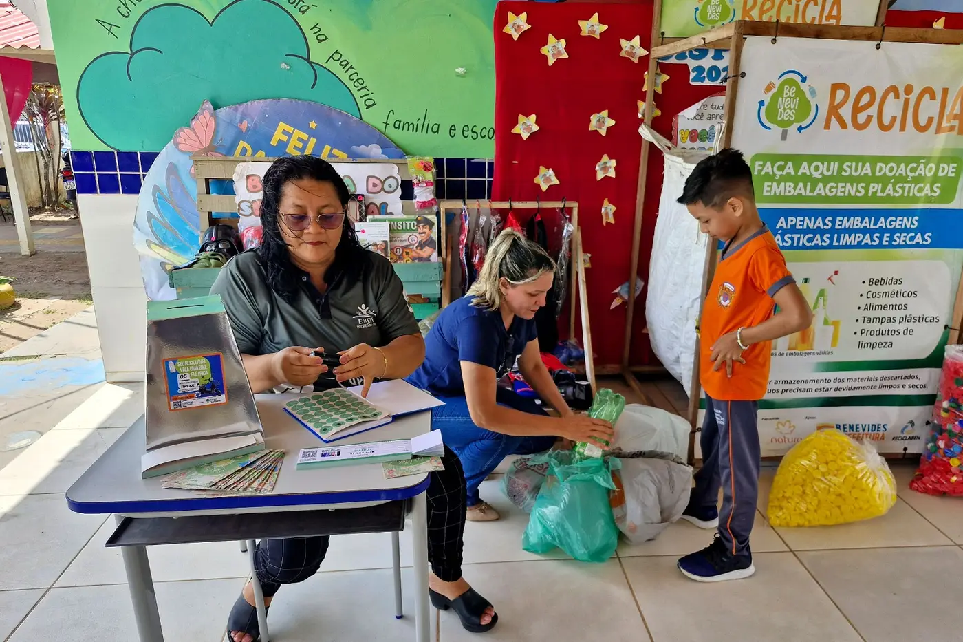 Primeiro Ecoclubinho na Escola Professora Didi (Begolândia)! As crianças trocam recicláveis por pontos e ganham prêmios, unindo diversão e sustentabilidade.