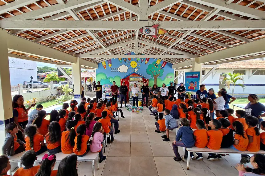 “Jogar lixo na natureza não pode. A cidade fica feia. Aqui, estou trocando 30 tampinhas (plásticas) por pontos e quero ganhar aquela mola”, e o estudante Leonan Gabriel, do primeiro ano, indica um brinquedo colorido em exposição na estante de troca. Leonan e seus colegas formaram o público-alvo das explanações sobre educação ambiental conduzidas pelas equipes da Secretaria Municipal de Meio Ambiente e Turismo (Semmat) e Secretaria Municipal de Defesa Social, Transporte e Trânsito (Semdestran). “Essas crianças vão ser multiplicadoras da mensagem do Recicla Benevides para outras escolas e também para as comunidades. Nós agregamos as palestras de educação para o trânsito com educação para a reciclagem”, explicou Diego Nascimento, chefe de divisão de educação para o trânsito da Semdestran.