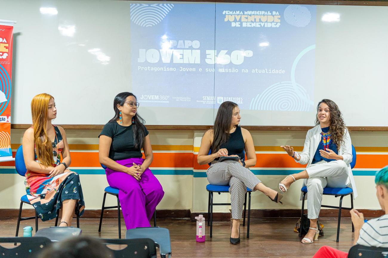 Na abertura, os jovens participaram de um bate-papo 360º com influencers e profissionais de educação que exercem o protagonismo em suas áreas de atuação, envolvendo temas variados, desde a questão ambiental até atuação da juventude e a importância da educação para o exercício do protagonismo entre os jovens. A mesa de debates foi composta por Fernanda Serrão, estudante de pedagogia pela Universidade do Estado do Pará (UEPA) e atuante na equipe do Selo Unicef em Benevides, Carla Braga, diretora de projetos da Cooperativa da Juventude Amazônida pelo Desenvolvimento Sustentável (COJOVEM) e jovem embaixadora da ONU, além de Isabela Nascimento, historiadora e produtora de conteúdo. A mediação do bate-papo 360º foi feita por Arise Lourinho, professora de redação do Cursinho Aprova Benevides.