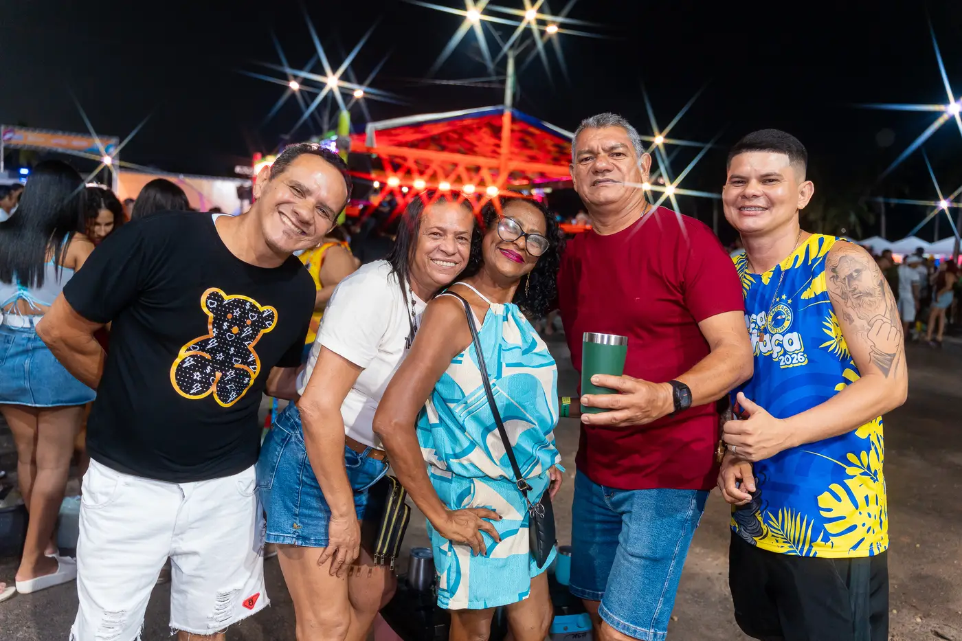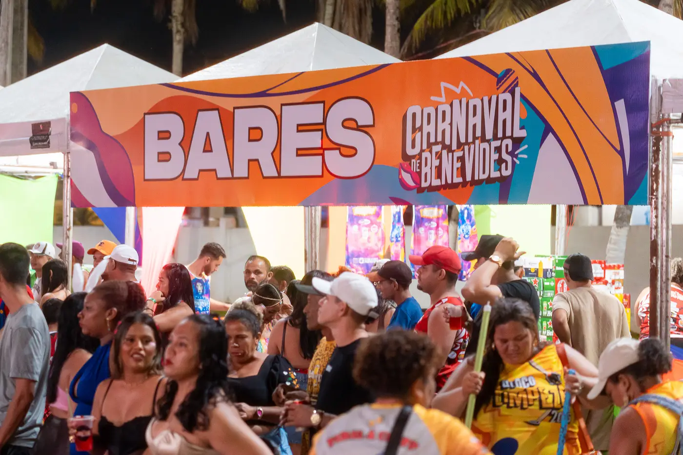 Amigos de longa data e novos visitantes celebram juntos a hospitalidade de Benevides, transformando o corredor da folia em um grande reencontro.