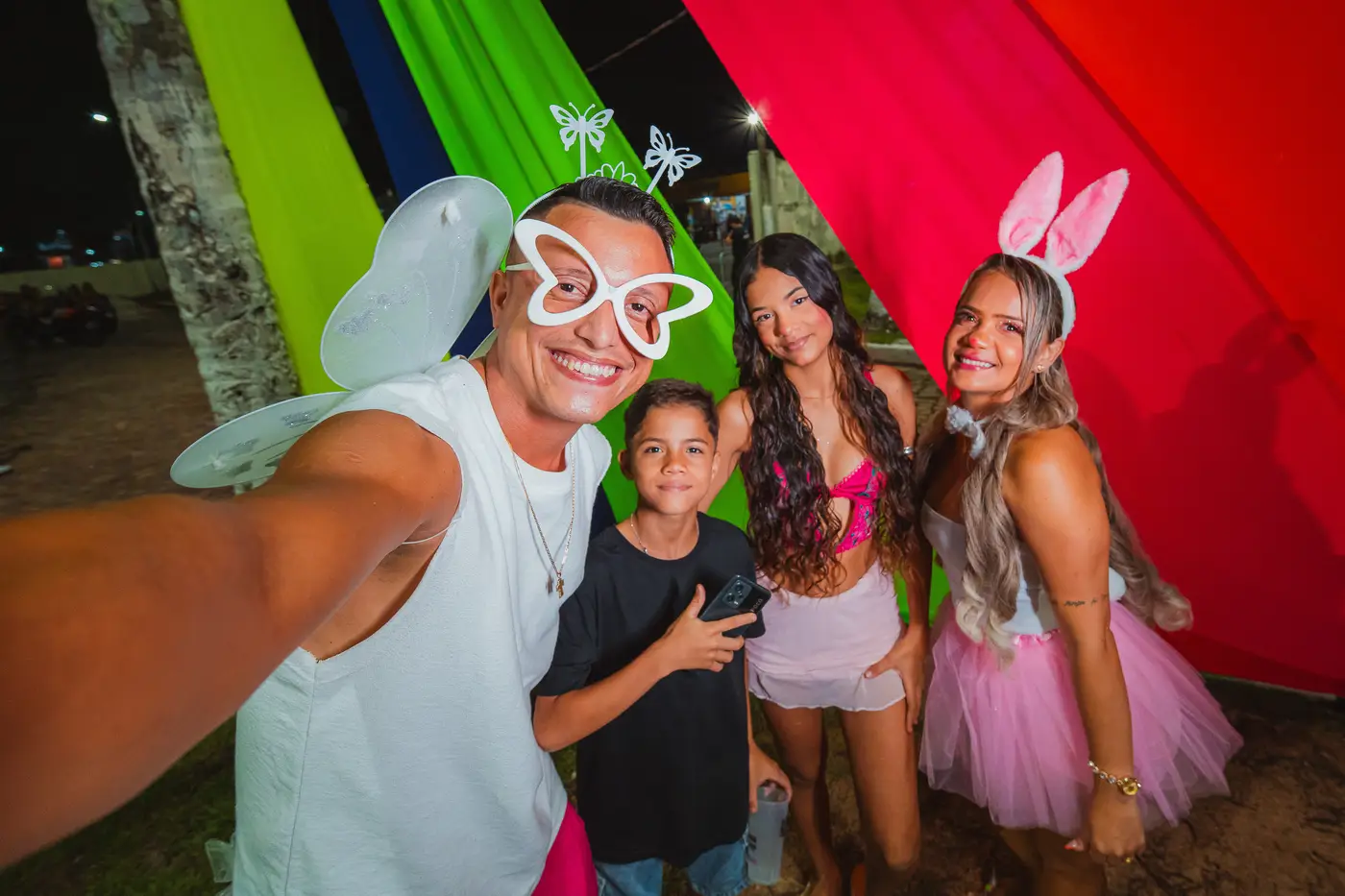 O clima de aprovação familiar também marcou a vinda da enfermeira Gleice Ferreira e de sua amiga Delma Modesto, que se deslocaram de Santa Maria com toda a família para aproveitar a festa. Fantasiadas e animadas, elas destacaram a paz do evento. “Tudo organizado, tudo certinho, muito tranquilo, legal mesmo!”, afirmou Delma, ressaltando que a segurança do local permitiu que todos curtissem tranquilamente.