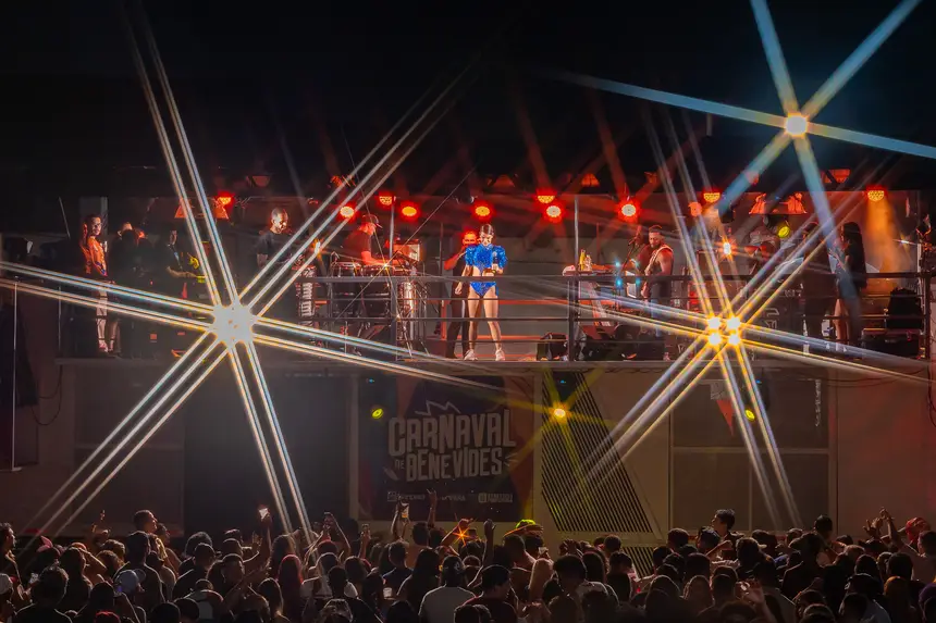 A apresentação da banda Babado Novo, liderada pela carismática Mari Antunes, foi o grande ápice da segunda noite no Circuito Nagibão. Subindo ao trio elétrico por volta das 3h da madrugada, a cantora baiana não deixou ninguém parado, trazendo um repertório que é a alma do Carnaval de Salvador. Com uma performance eletrizante e muita interação com o público benevidense, Mari reafirmou por que a banda é um dos pilares do axé nacional, transformando o centro de Benevides em uma verdadeira micareta.