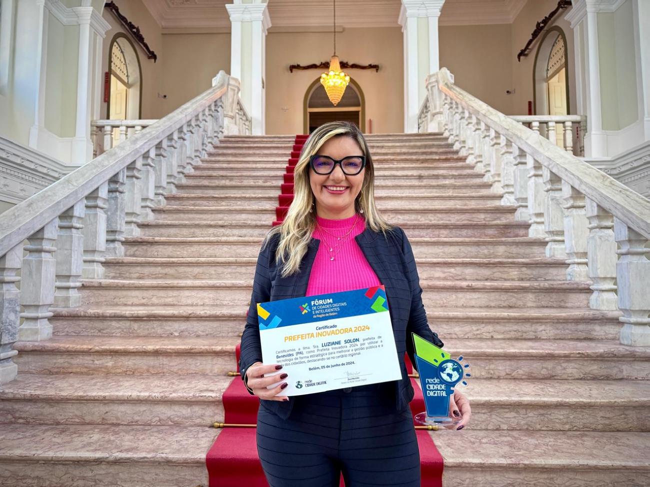 Na última quarta-feira, 5 de junho, a Prefeita de Benevides, Luziane Solon, foi homenageada com o título de Prefeita Inovadora 2024, em reconhecimento às suas iniciativas de modernização e inovação no município. Entre as conquistas destacadas está a implantação de sistemas próprios no Departamento de Tecnologia da Informação (DTI).