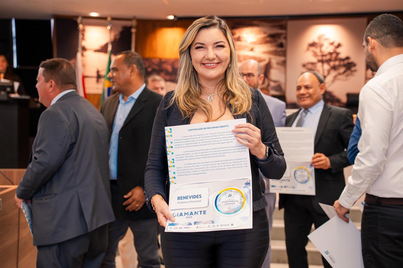 A prefeita Luziane Solon celebrou a premiação com entusiasmo e destacou a importância desse reconhecimento. “Este Selo Diamante é a prova de que estamos no caminho certo. Transparência não é apenas uma obrigação legal, é um compromisso com cada cidadão de Benevides. Nosso objetivo é garantir que todos saibam como os recursos estão sendo aplicados e que possam confiar plenamente na gestão pública”, destacou a prefeita.