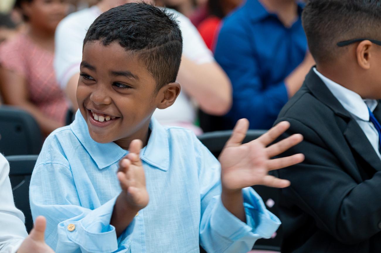 A felicidade estampada no rosto de cada criança no plenário