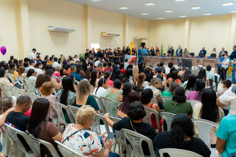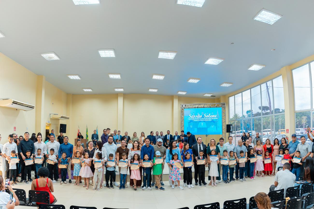 A Sessão Solene foi aberta com o Hino Municipal e seguiu com a fala de todos os envolvidos, em um plenário lotado por famílias