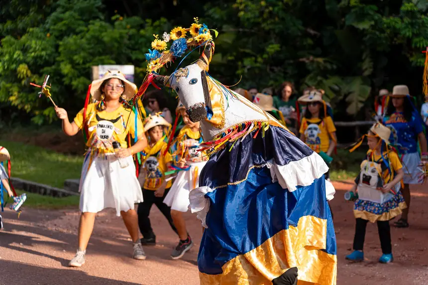 A primeira COP de Crianças da Amazônia, sediada em Benevides, foi encerrada nesta terça-feira (04/11) com uma celebração que uniu sustentabilidade e a rica cultura amazônica. Após dois dias de intensa imersão e protagonismo infantil, o evento culminou em um grande Cortejo Cultural, que desfilou pelas ruas da cidade, do Centro Mariápolis até a nova Praça da Cohab. A festa encerrou a agenda de debates ambientais com apresentações culturais, show regional, animação e muito colorido.