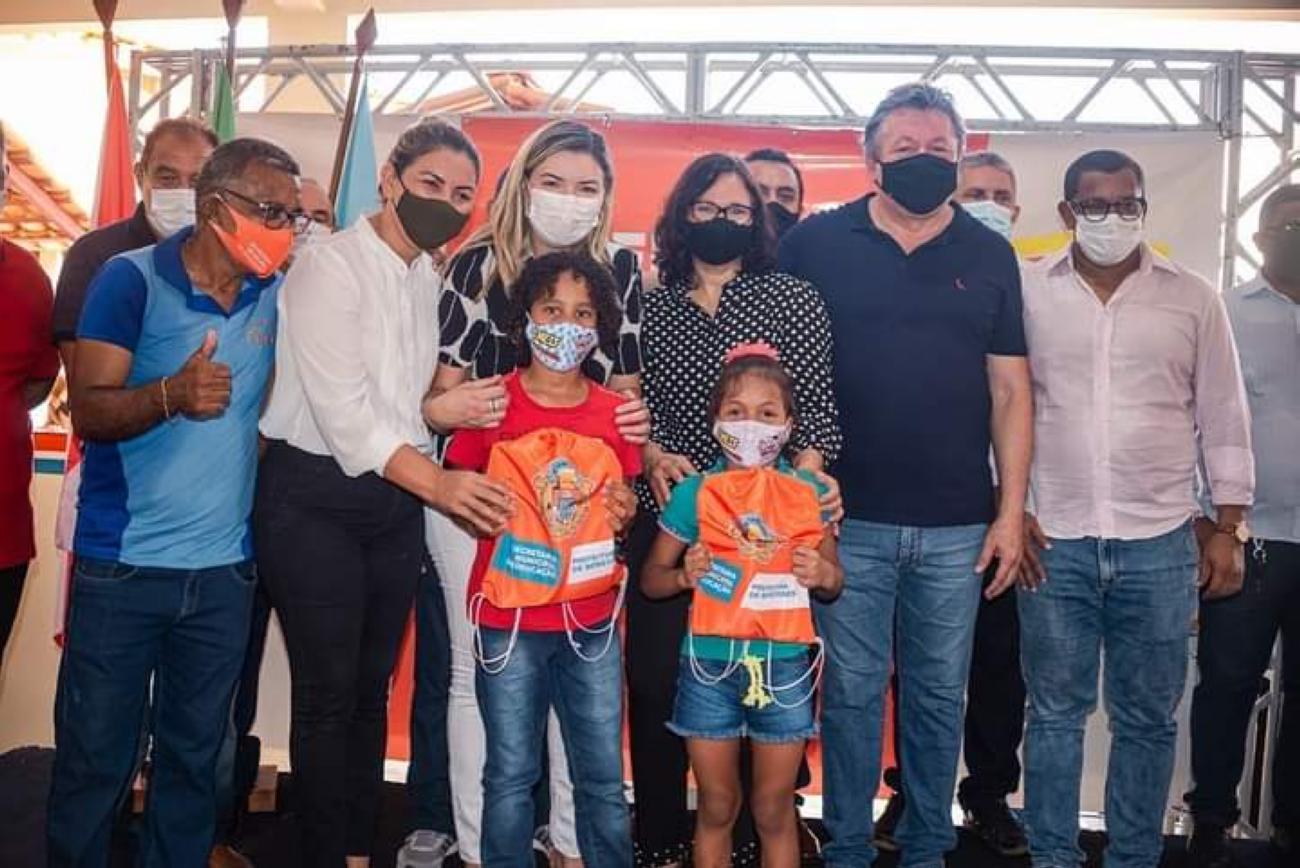 Na ocasião também estão sendo entregues o kit escolar para todos os alunos da RME de Benevides, que compõe bolsa, lápis, borracha, apontador, caderno, talheres e copo individual.