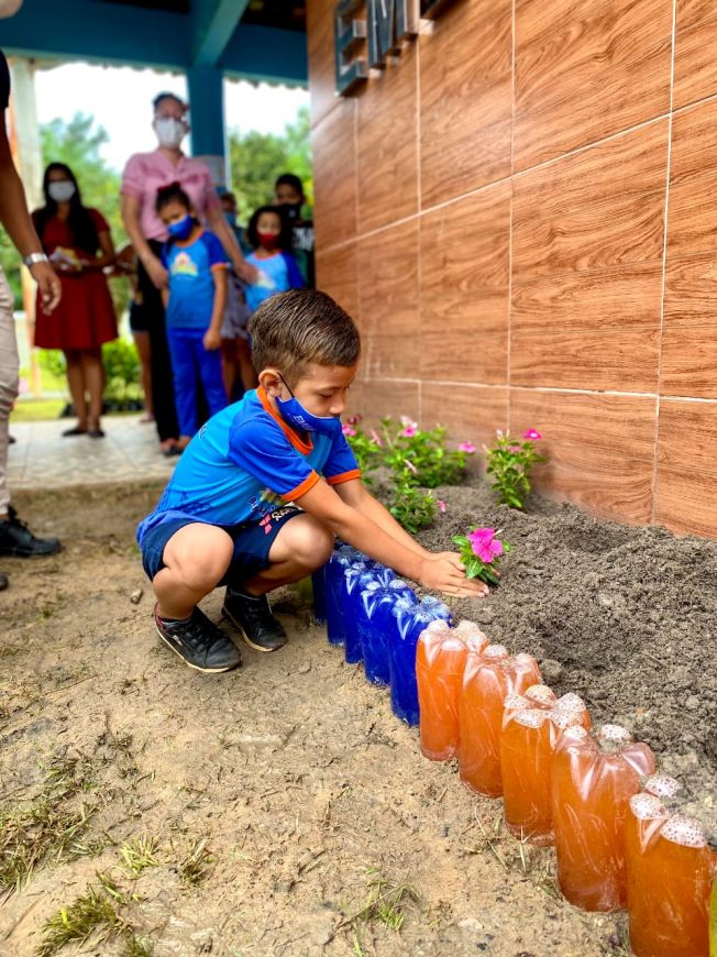 Além disso, os alunos receberam formação sobre Educação Ambiental, que os auxiliou a como se proteger de animais venenosos no período chuvoso, conhecimento e valorização da água, e, ao final, os estudantes plantaram flores no jardim da escola.