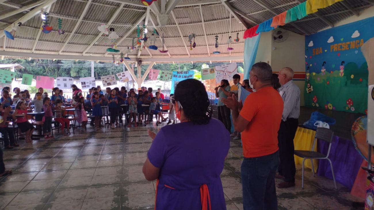 Algumas escolas receberam o Sr. Oldaly Monteiro, morador do distrito de Murinin, músico e autor do hino de Benevides. Ele contou um pouco de sua história para os alunos e falou sobre o fato histórico do dia 30 de março, que serviu de inspiração para compor o hino municipal.