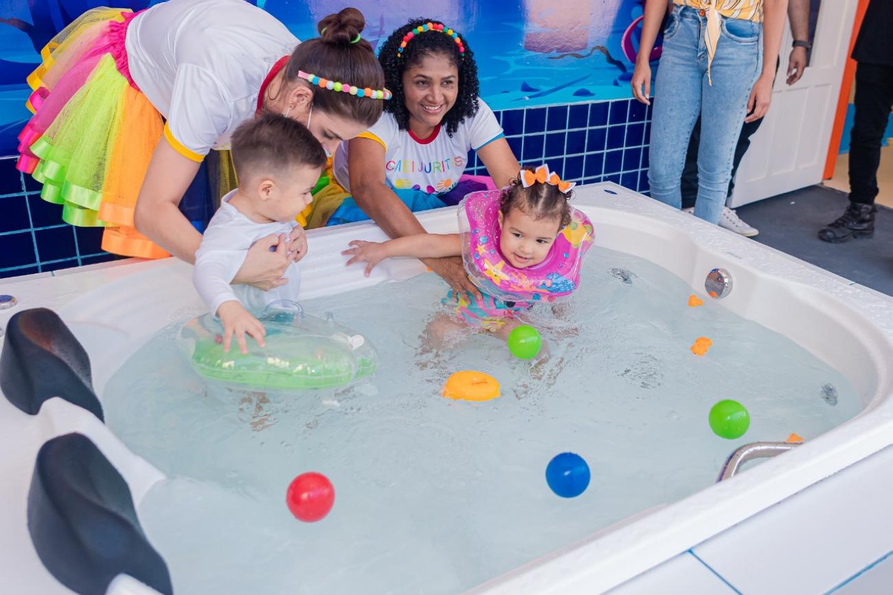 O CMEI Jardim das Juritis, que se localiza na COHAB, era uma das unidades que estavam passando por reforma. Além da arquitetura lúdica, o espaço oferece a novidade do SPA do afeto, que possibilita terapia do relaxamento em piscina às crianças.
