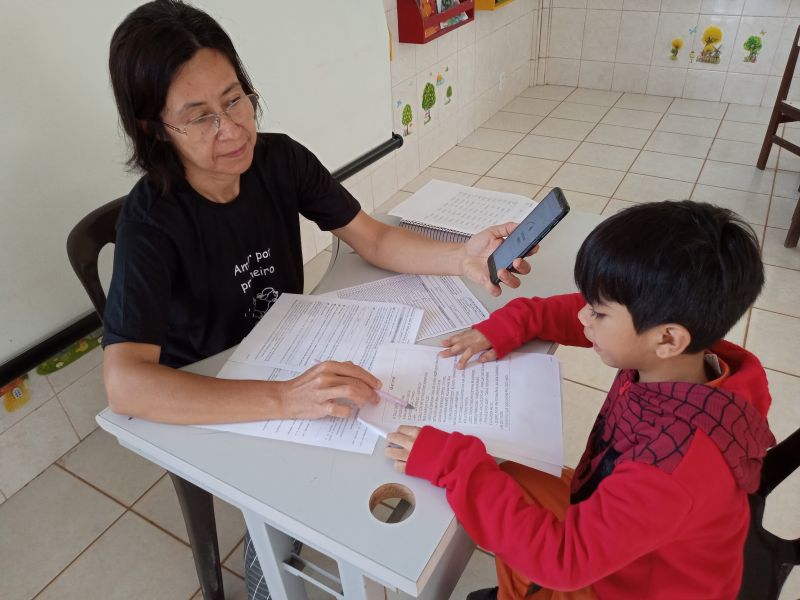 O teste é feito individualmente. A gravação da leitura do estudante é realizada por meio de um aplicativo do Centro de Políticas Públicas e Avaliação da Educação (CAEd), acompanhado do professor, que depois é enviada para correção e análise.