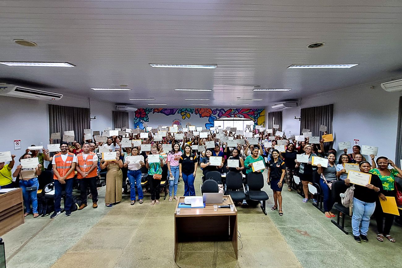 Profissionais de manipulação de alimentos e auxiliares da rede escolar de Benevides participam de I formação de 2024