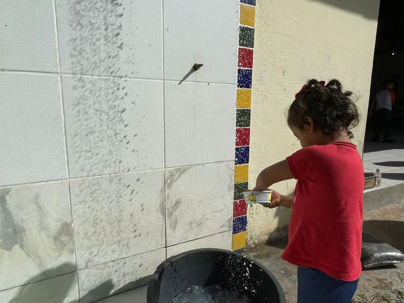 Gleice é mãe de uma criança de 5 anos da UMEI Melquíades de Lima, que fica no distrito de Murinin. Ela se tornou uma das apoiadoras dessa prática. No pátio da instituição de ensino, à céu aberto, as crianças costumam brincar livremente com brinquedos naturais, nesse espaço elas também têm a possibilidade de fazer produções artísticas.