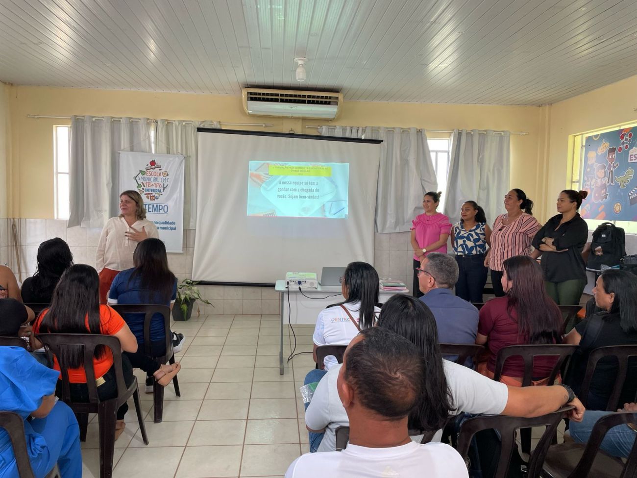Monitoras e Motoristas de ônibus escolar são profissionais da educação responsáveis por conduzir o caminho dos alunos diariamente da escola para casa e da casa para a escola, portanto na manhã do último sábado, 12, a Secretaria Municipal de Educação de Benevides (SEMED), por meio do Núcleo Psicossociopedagógico, promoveu a primeira formação para os servidores.