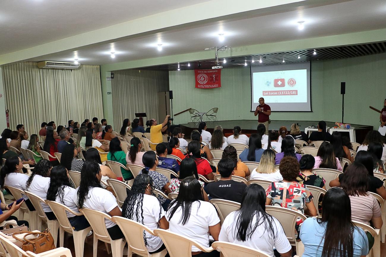 No último sábado, 24, os Assistentes Técnicos Educacionais (A.T.E.) da Rede Municipal de Ensino de Benevides, receberam capacitação com base na Lei Lucas. O programa de capacitação continuada para A.T.E., tem como proposta fortalecer, estimular e auxiliar no desenvolvimento e aprimoramento das competências dos profissionais que trabalham com as crianças PCD, das escolas do município, além de os preparar para lidar com situações de risco que possam acontecer com as demais crianças no ambiente escolar. A Lei Lucas, nº 13.722 do ano de 2018, torna obrigatória a capacitação em primeiros socorros para professores e funcionários de escolas públicas e privadas do ensino básico e infantil.