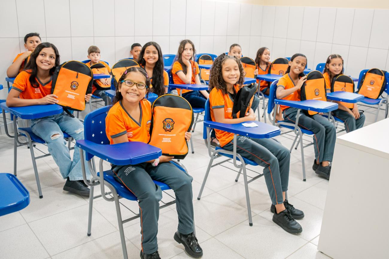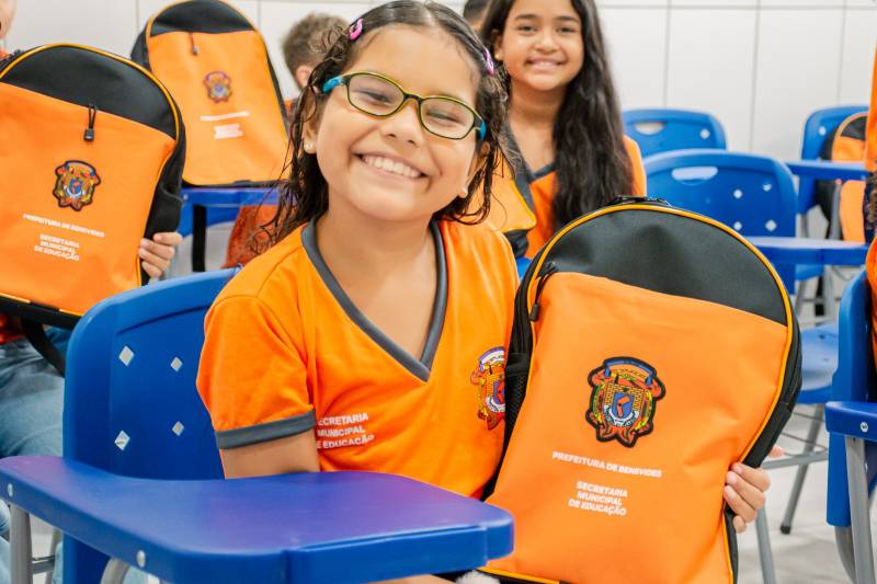 Distribuição de kits escolares completos: com mochilas, uniformes, tênis e materiais pedagógicos para todos os alunos da rede;