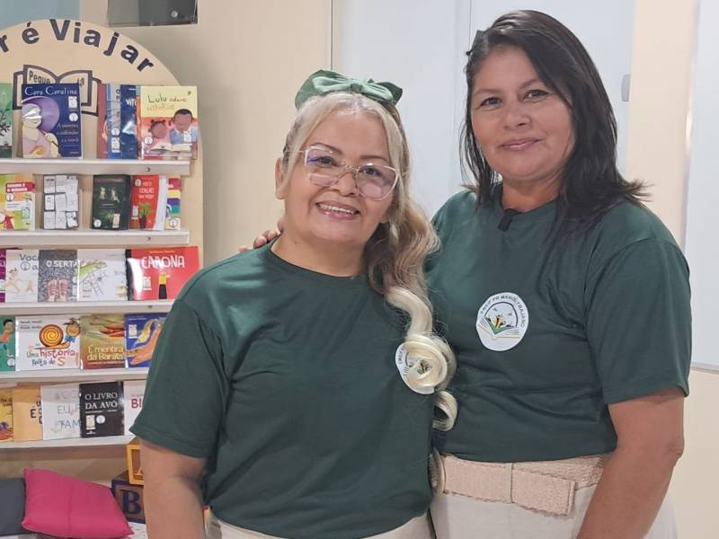 A coordenadora Roseli Silva e a gestora educacional Elza Sarmento celebraram a transformação da Escola Pastor Manoel Trajano.