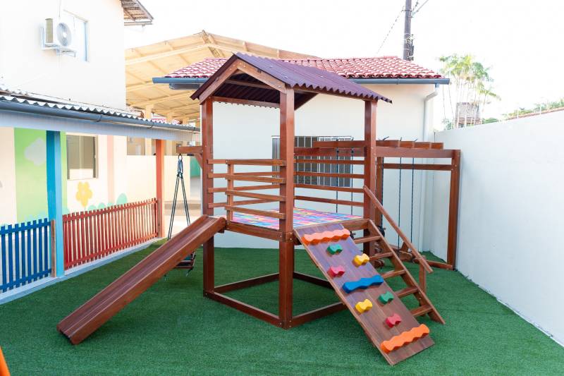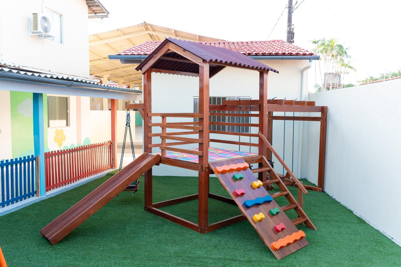 O playground e a área de recreação da nova creche são pensados para o desenvolvimento motor e social das crianças, com segurança e diversão.