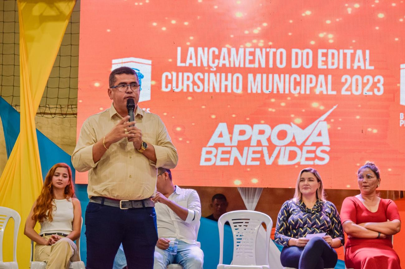 Na noite da última sexta-feira, 03, a Prefeitura de Benevides, por meio da Secretaria Municipal de Juventude (SEMJUV), promoveu o lançamento do edital para o Aprova Benevides 2023. Um evento que reuniu centenas de estudantes de diversas escolas do município, todos com o sonho de ingressar na vida universitária em 2024, muitos acompanhados de pais, mães e professores.
