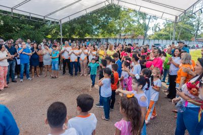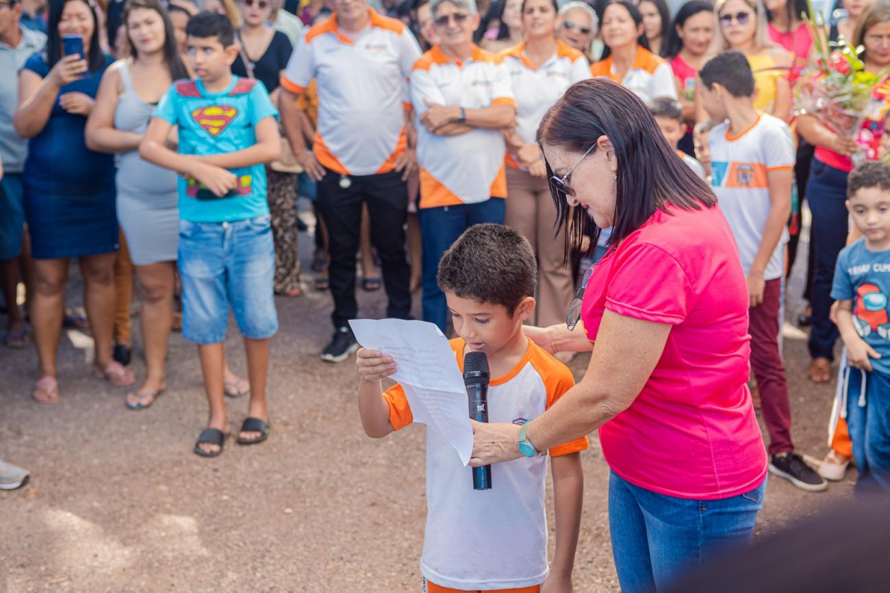 "Gostaríamos de agradecer pela iniciativa de realizar um sonho de muitos anos da comunidade de Santa Maria, nossa tão almejada orla", disse João Wesley, aluno do 1° ano, em nome dos alunos e servidores da Escola Angélica Salles.