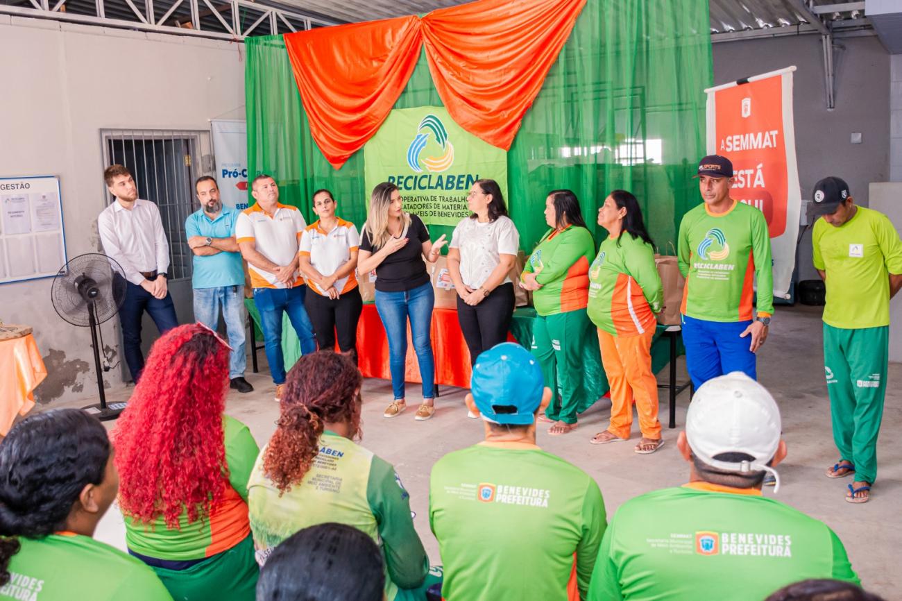 Na última terça-feira, 23, a Prefeitura de Benevides, por meio da Secretaria Municipal da Gestão do Meio Ambiente e Turismo (SEMMAT), fez a entrega dos novos uniformes para os cooperados da Cooperativa de Trabalho de Catadores de Materiais Recicláveis de Benevides (RECICLABEN), que realiza o trabalho de coleta nas comunidades e empresas do município.