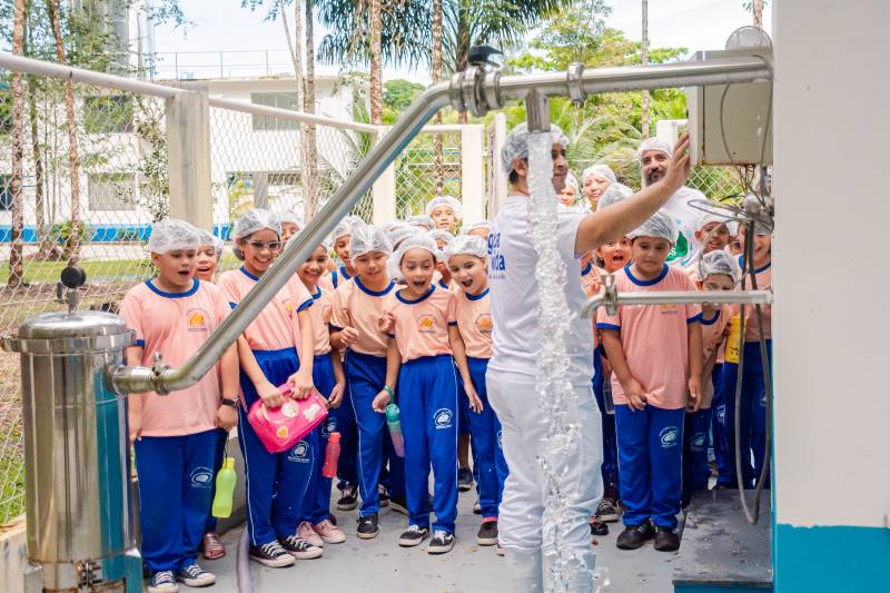 Sete empresas fabricantes de água mineral estão instaladas em Benevides. A qualidade do recurso natural que jorra das fontes é o principal motivo do investimento, como revelou André Gaertner, proprietário da Água Vida, empresa que abriu as portas para a visita dos estudantes na programação de mais esta edição da Jornada da Água.