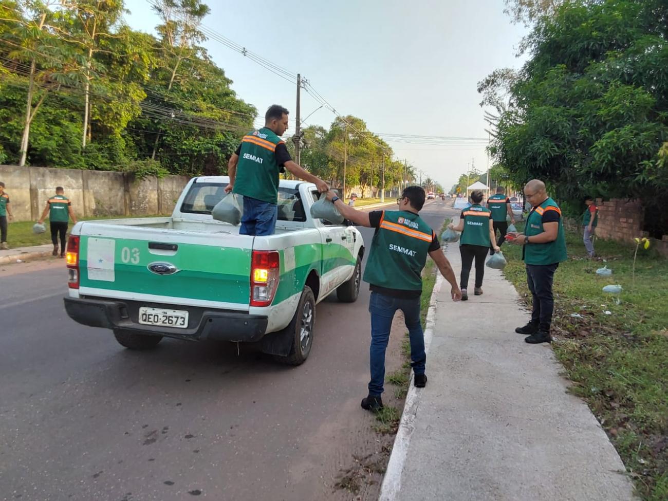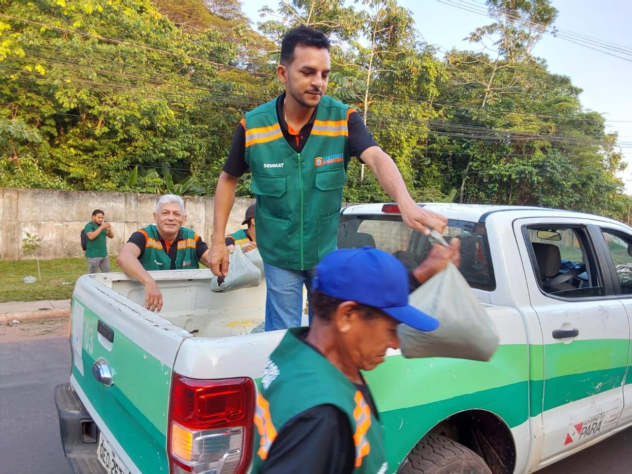 Força-tarefa no Mutirão: Servidores da Secretaria de Meio Ambiente (SEMMAT) montaram uma força-tarefa de logística com carros e carrocinhas, posicionando-se estrategicamente ao longo da PA-391 para garantir que o plantio das 710 mudas ocorresse de forma rápida e eficiente.