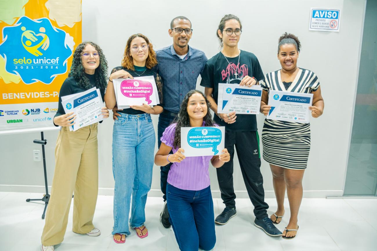 Uma turma formada por 17  jovens e adolescentes comemorou na manhã da última sexta-feira, 22, a conquista de certificado pela conclusão do curso de Inclusão Digital - Excel Avançado, promovido pela Prefeitura de Benevides, por meio das Secretarias  Municipais do Trabalho e Promoção Social - Semteps e do Meio Ambiente e Turismo  - Semmat, com a Sala+Verde, juntamente com o Selo UNICEF Benevides.